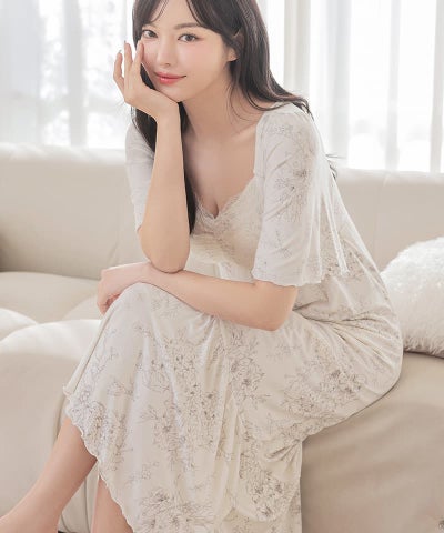 《ラクシアスリープ》ナイトブラワンピース 半袖ロング丈 無地/花柄のレビュー
