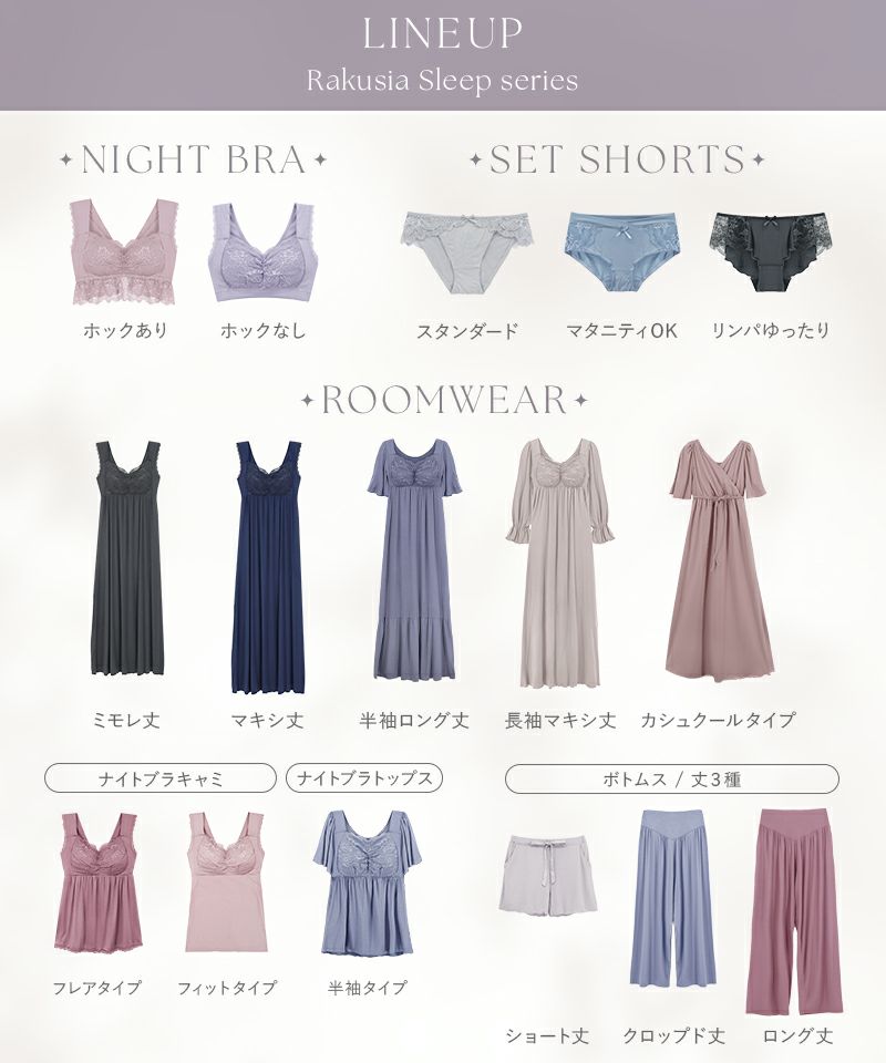 《ラクシアスリープ》ナイトブラキャミ&パンツセット【クロップド丈/ロング丈】