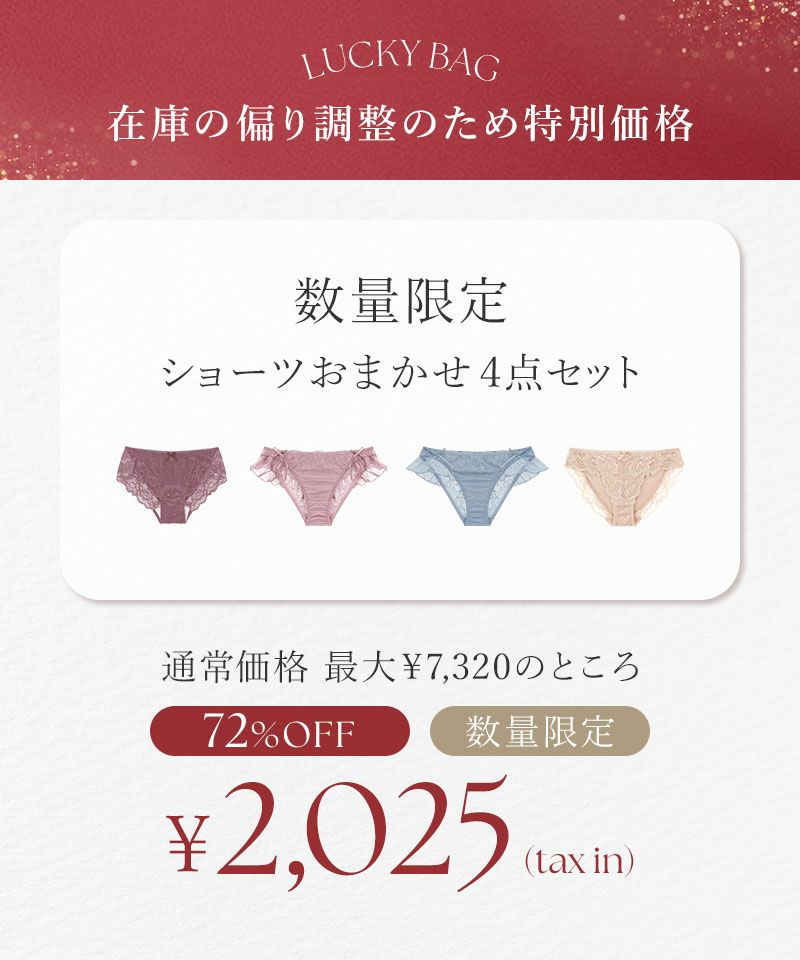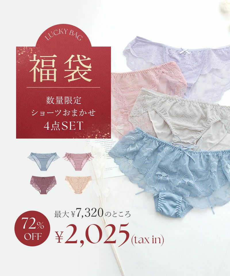 他の画像を見る お気に入りに登録する 2025福袋 デザインおまかせショーツ4点セット【数量限定】 通常価格 ¥ 7,320 ¥ 2,025 税込 4.63 (30) 販売期間 2024/12/01 18:00 〜