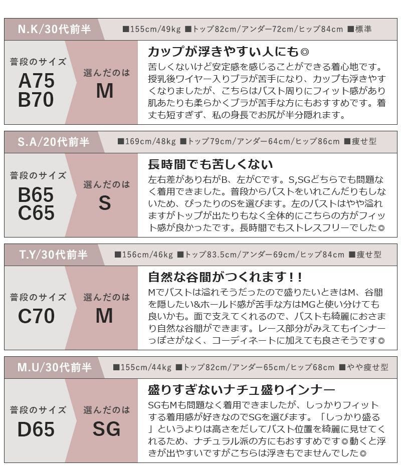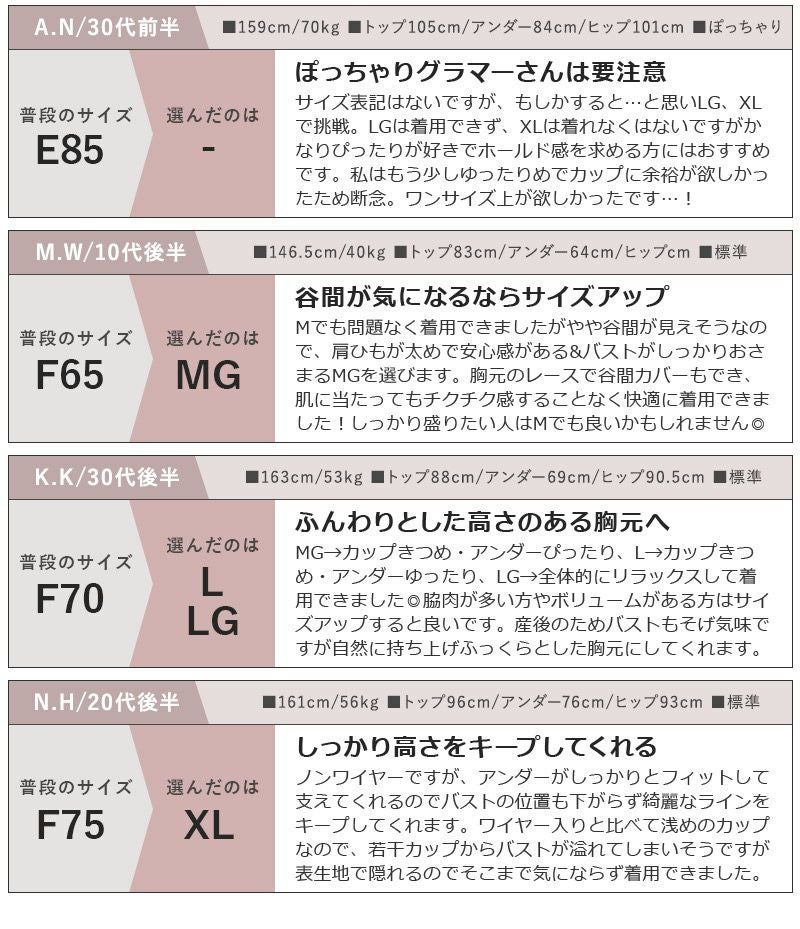 他の画像を見る お気に入りに登録する 【EFGカップ】Leene サクラレース ノンワイヤーブラ&ショーツ 通常価格 ¥ 5,780 ¥ 5,202 税込 4.77 (22) #ノンワイヤー #谷間メイク 10%OFF #L字ワイヤー