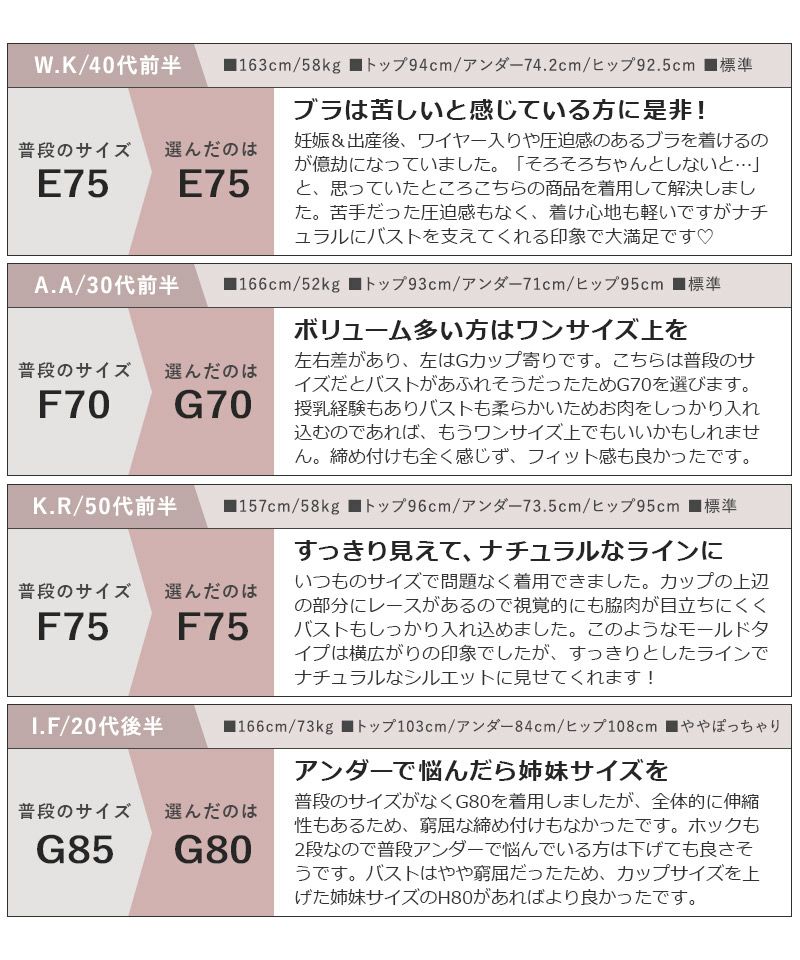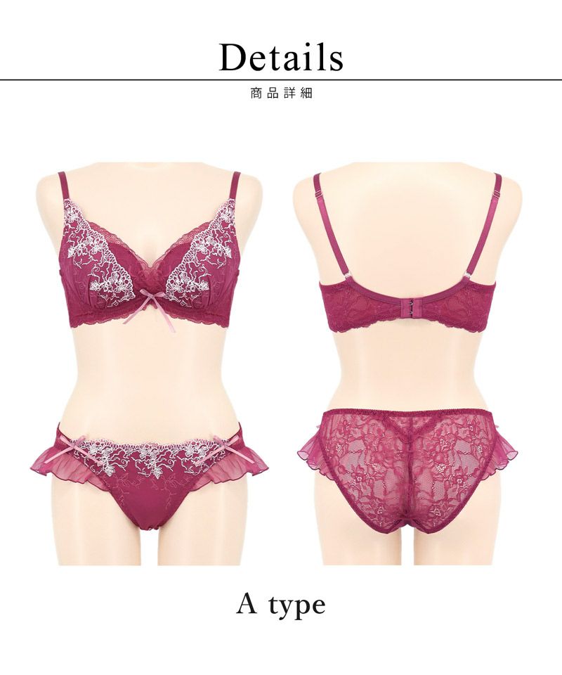 他の画像を見る お気に入りに登録する Leene サクラレース ノンワイヤーブラ&ショーツ【E~Fカップ】 通常価格 ¥ 5,780 ¥ 5,202 税込 4.80 (20) #ノンワイヤー #谷間メイク 10%OFF #L字ワイヤー