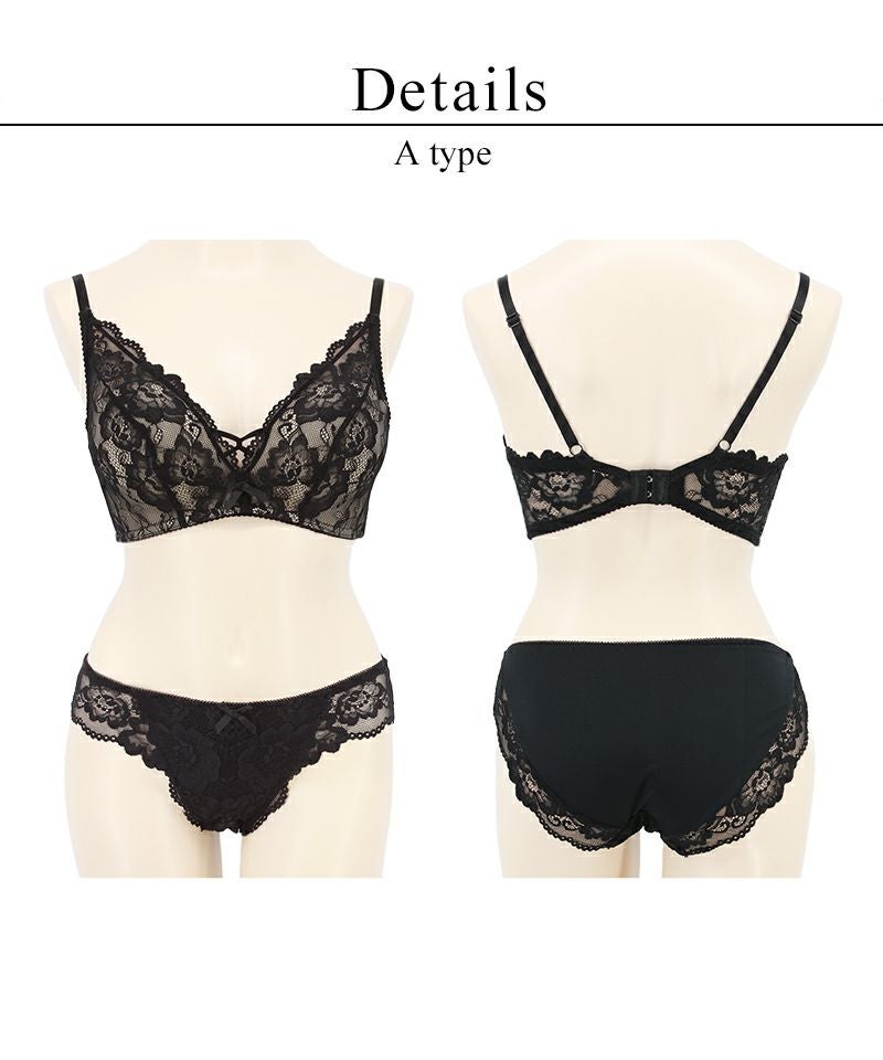 Leene コデマリレースカシュクールブラ&ショーツセット / 痛くない脇高谷間ブラ